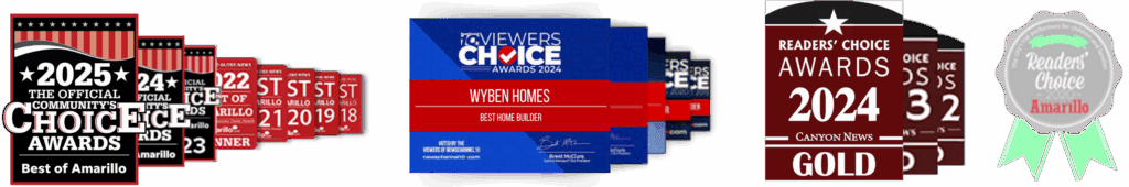 We build custom homes and new construction homes in Amarillo, Bushland, and Canyon, Texas areas. Our commitment to excellence shows in our work ethic from communication, home design stage, and building your quality custom home. From the moment you accept to choose Wyben Homes as your home builder, you are provided with exceptional customer service creating an experience that you will enjoy. We offer advanced residential construction techniques with a modernistic approach to all the homes we design.